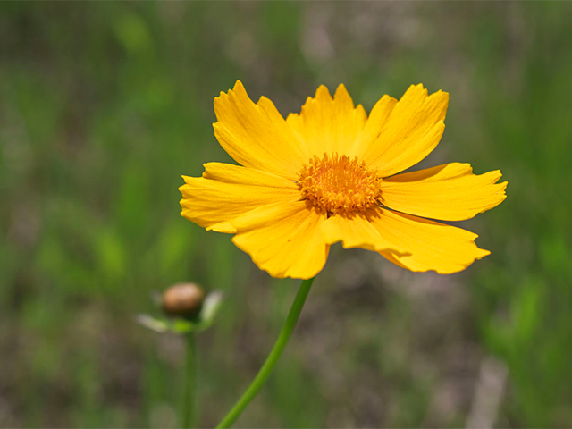 A lanceleaf coreopsis flower blooms in the Danforth Center prairie.